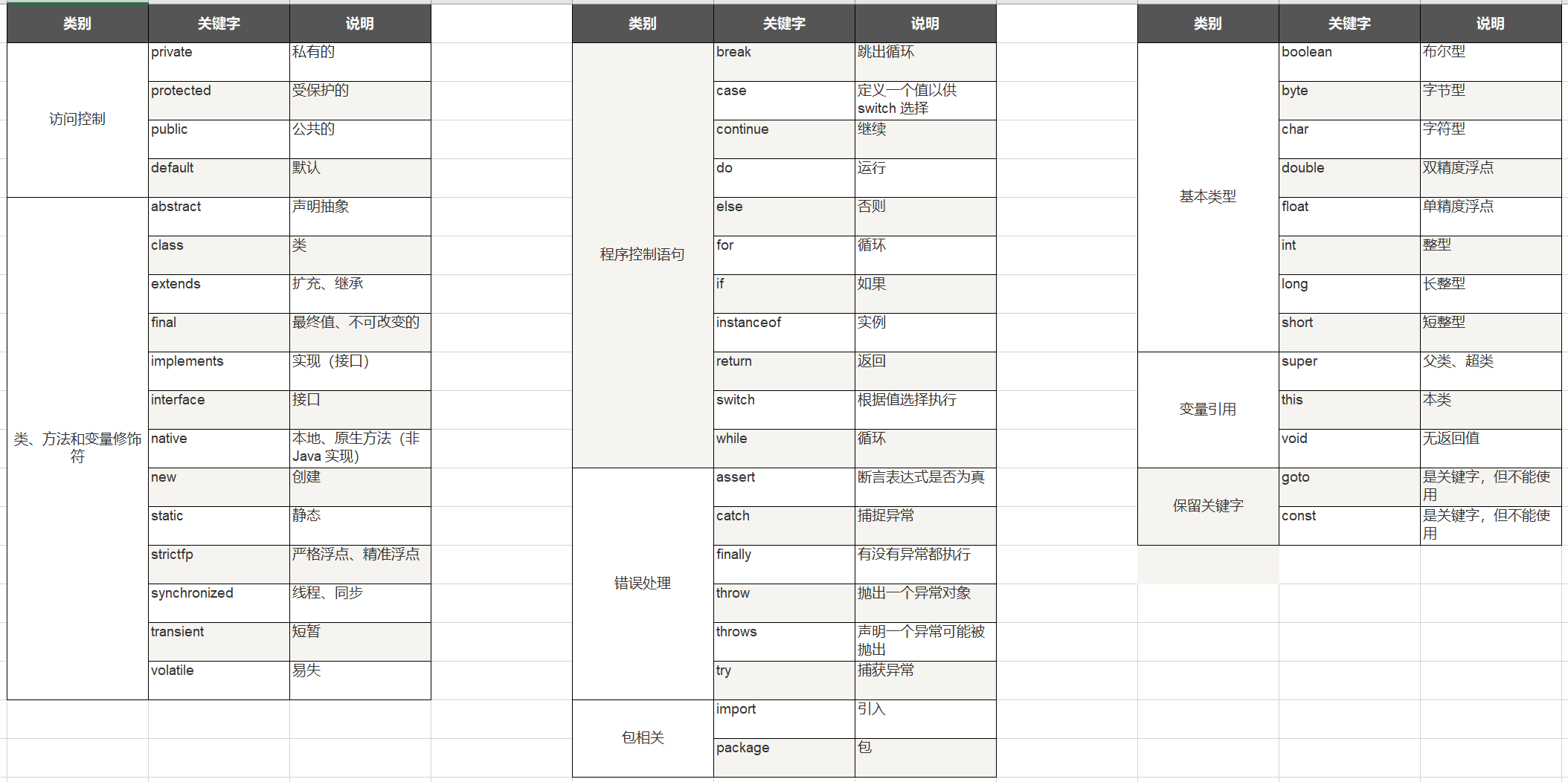 下面列出了 Java 关键字。这些保留字不能用于常量、变量、和任何标识符的名称。